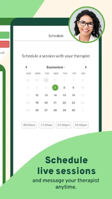 • Schedule live sessions with your therapist or use the secure messenger