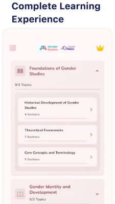 • Structured Content: Learn Gender Studies step-by-step, from basic concepts to advanced theories.