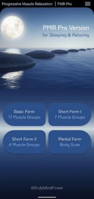 With regular practice, you will always find it easier to get into deeper states of relaxation. Once you have enough practice with the long form of PMR (Basic Form: 17 Muscle Groups), you can switch to the short forms with 7 and 4 muscle groups and finally to the Mental form: Body Scan. Then you can relax your body even mentally.