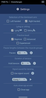 Set your preferred duration of tension and relaxation between the muscle groups.